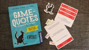 Jeder Spieler wählt ein Zitat aus und schiebt es ganz frech einem anderen Autor unter. Dabei entstehen die irrwitzigsten Kombinationen. Wer es schafft, innerhalb von mehreren Runden sein Geschick beim Zuordnen der Zitate zu beweisen, bringt nicht nur seine Mitspieler zum Lachen, sondern erhält auch noch “WITZIG-Stempel”. Der Spieler mit den meisten Stempeln gewinnt das “Game of Quotes”.