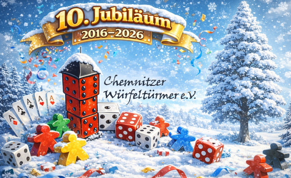 Am Abend des 05. Februar 2016 ist ein Strahlen in den Gesichtern der Gründungsmitglieder zu sehen ✨ Der neue Spieleverein Chemnitzer Würfeltürmer e.V. ist geboren. Und kaum hat er das Licht der Welt erblickt, steckt er sich ehrgeizige Ziele: 👉 Das Spielen in all seinen Facetten als kulturelles Gut in Chemnitz […]