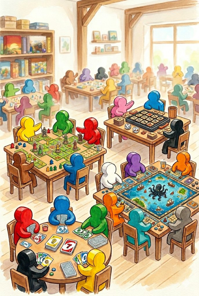 Du spielst immer mit denselben Leuten? Wir mischen die Karten neu! Bei unserem „Speed-Gaming“ stehen kurze, knackige Spiele im Fokus. Nach jeder Runde wechseln wir die Mitspieler, sodass du in lockerer Atmosphäre neue Leute und neue Spiele kennenlernst.